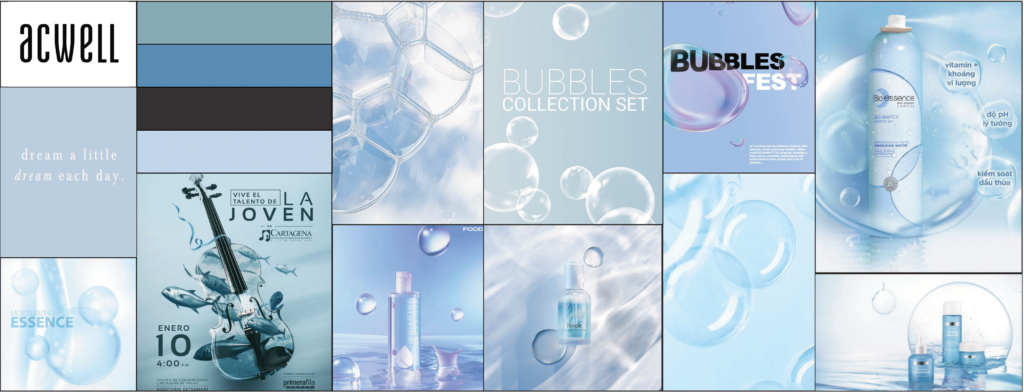 With a refined color palette of blue and grey, the design exudes calmness and elegance, while playful bubble motifs add a hint of fun. The sleek typography and clean lines create a professional yet inviting look, perfectly capturing Acwell’s essence of purity and contemporary style.