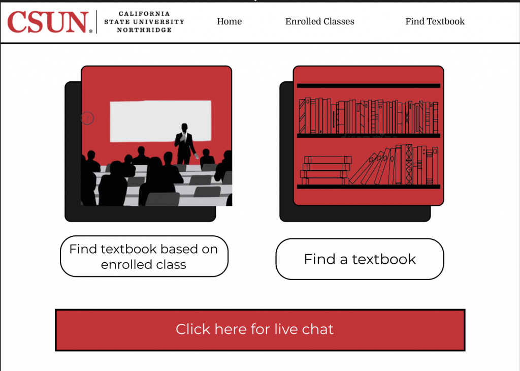 We believe that by creating a website that has links that lead to web pages where textbooks can be purchased for CSUN students like Autumn, We will reduce the amount of time it takes students to purchase textbooks and allow them to buy it at a lower cost. we will know this to be true when we see students using the website whenever they need a textbook.